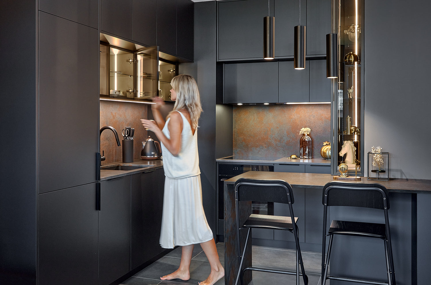 Nowoczesna kuchnia w czerni z industrialnym akcentem